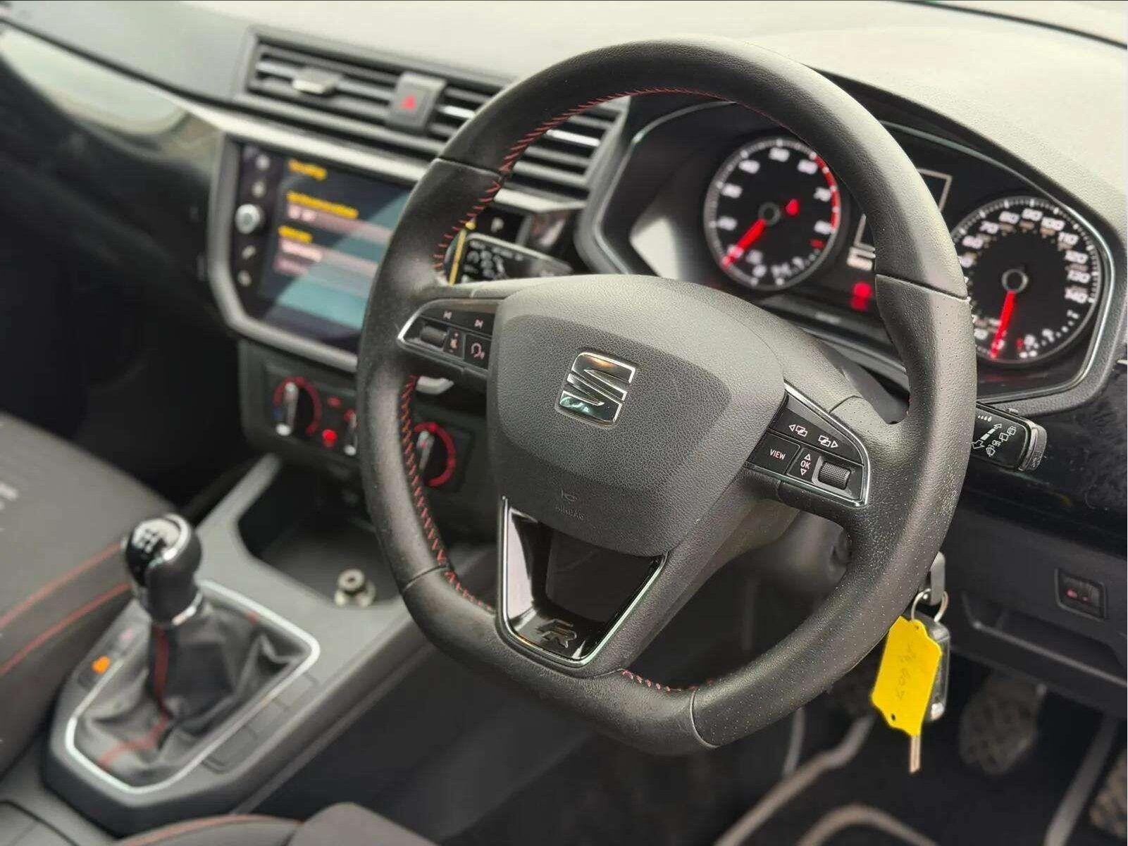 This 2018 SEAT Ibiza TSI FR has been owned by only two previous keepers, offering a well maintained example of this popular hatchback. It features a 1.0 litre petrol engine, meeting Euro 6 emissions standards, and comes with a 6 month warranty for your peace of mind. The vehicle will be supplied with a fresh 12 month MOT and benefits from partial service history, with the last service recorded at 88993 miles. Inside, you will find a host of useful features including rear parking sensors with parking assistance, Bluetooth audio streaming and a handsfree system, automatic headlights, air conditioning, and Full Link compatibility for Android Auto and Apple CarPlay.